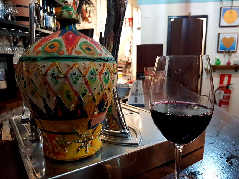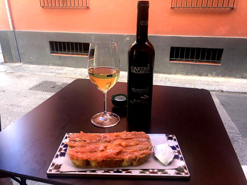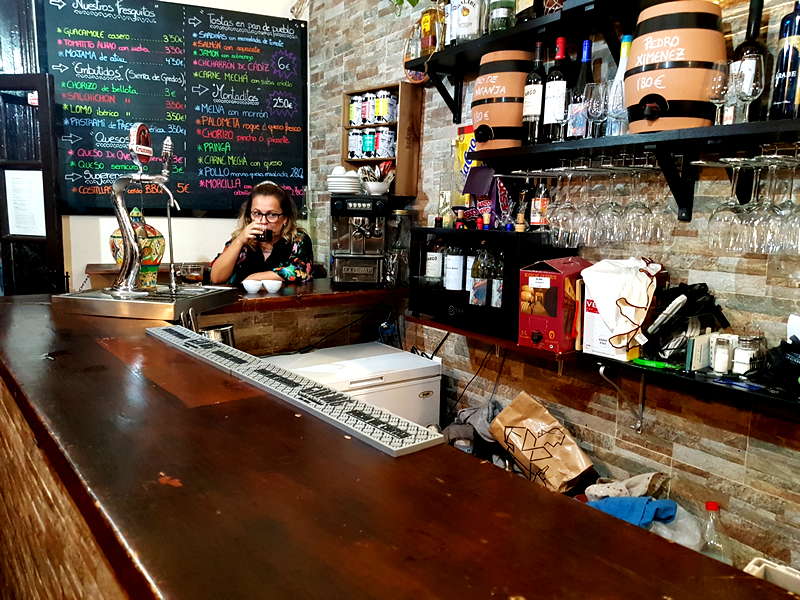 En Ajo&Agua se respeta el legado de las antiguas abacerías en las que la falta de cocina elaborada se suple con buenos productos de nuestra tierra. Una carta de tapas frías, embutidos, quesos, tostas y montaditos, pero también recetas como el Pastrami de presa ibérica 3,50€ o las costillas BBQ 5,00€ elaboradas por Tu otra cocina, una empresa de la que hablaremos en breve. Tapas como el guacamole casero hecho al momento 3,50€, tomatito aliñao con melva 3,50€, mojama de atún 4,50€, embutidos como el chorizo de bellota 3,00€, salchichón y lomo ibérico de bellota 3,50€. Quesos como el de oveja reserva 3,00€ o el semicurado 3,00€. Las tostas y montaditos están elaborados con pan de pueblo de masa madre de La Esencia y La Parra. Tostas de sardinas con mermelada de tomate, salmón con aguacate, jamón con salmorejo, chicharrón de Cádiz o de carne mechá 6,00€. Los Montaditos los podéis encontrar de melva con morrón, palometa con roque o queso fresco, chorizo pincho o picante, de pringa, de carne mechá con queso 2,50€ y los de pollo moruno, queso y ensalada o morcilla con queso de cabra y cebolla caramelizada por 2,80€. La Mayoría de los vinos son de Huelva y de Sevilla. Venden vino de naranja y vermut de Bodegas Salado a granel.