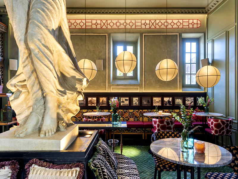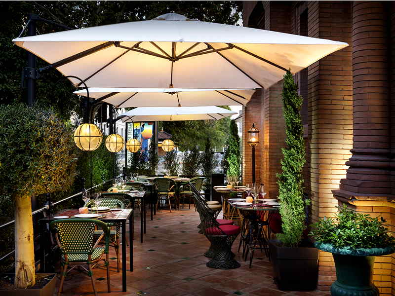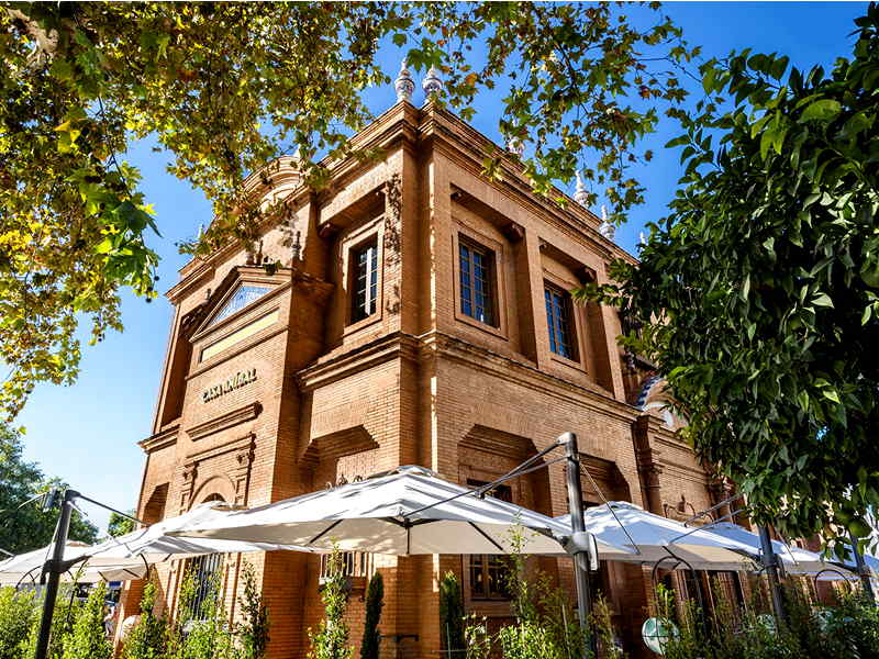 En diciembre de 2021 fuimos a conocer un espectacular local que acababa de abrir sus puertas. Era una de la aperturas más esperadas del año, y generó muchas expectativas. La publicidad y el boca a boca fue creando una onda expansiva de curiosidad y hasta de cierta ansiedad; y es que en la práctica, el público siempre espera con impaciencia los nuevos proyectos del Grupo Batuta. Cuatro años después, continúa siendo uno de los restaurantes de moda de la Capital Hispalense. Este singular inmueble fue la sede de la Asociación Sevillana de Caridad (institución nacida con el fin de acabar con la mendicidad en la ciudad) y de la Caja España de Inversiones, entidad que realizó varias reformas. Una construcción de ladrillo visto que Aníbal González realizó entre 1912 y 1914 en la intersección de las calles Reyes Católicos y Arjona. Eran los años del regionalismo a través del neomudéjar, que ya estaba apareciendo en estos momentos en alguna de sus construcciones más emblemáticas, aunque en este caso se muestra mucho más sobria y austera reduciendo al mínimo sus alardes ornamentales. Apenas algunos elementos cerámicos como remates, con predominio de las líneas rectas, tanto en la rejería de las ventanas y puertas. Al contar la edificación con la calificación de Suelo de Interés Público y Social, el proyecto debe cumplir con la normativa urbanística que obliga a que un gran porcentaje de la parcela sea destinada a escuela de hostelería. El resto del espacio está dedicado a un restaurante de unos 200m² si se suma la planta baja. Cuenta con tres estancias diferentes: terraza, planta baja y salón superior. La cocina se ubica en la planta baja y está a la vista del cliente. El interiorismo es obra de El Patio Sevilla dando como resultado un espacio elegante y sofisticado cargado de personalidad, con bonitos elementos decorativos como la Victoria alada o el ascensor de época en hierro forjado. Diseño y arquitectura maridando a la perfección para crear una atmósfera singular.