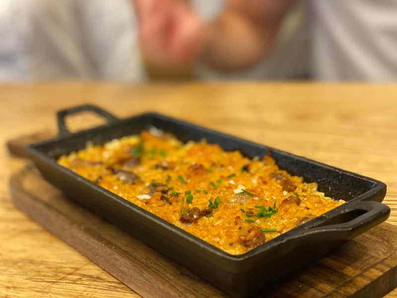 La mayoría de su oferta podéis pedirla tanto en tapas como en platos para compartir. Para abrir boca encontramos la anchoa del Cantábrico 2,80€, lomo de sardina en vinagre, 2,80€, lomo ibérico de bellota (50gr) 8,80€, tosta de panceta 5j 5,80€, mini retorta de oveja 12,50€ o la mini pastura de trufa negra 8,00€/16,00€. Tapas frías como la ensaladilla escabechá 4,80€/9,80€, merluza confitada al romero 5,50€, unos exquisitos huevos rellenos con base de anchoa y mejillón 3,50€ o el carpaccio de gamba de Huelva 9,80€. Molletes de cinta de lomo ibérica con panceta 4,20€ o el negro de calamares con alioli 4,80€. De fritos tenéis sus famosas croquetas del puchero 4,50€/9,00€ o los crujientes de pollo 4,50€/9,00€. No podéis dejar de probar su tortilla de Toñete (papas y cebolla) 9,80€ o el bacalao dorado 12,90€. Tapas calientes como la pata de pulpo braseado 14,00€, el auténtico solomillo al güisqui 4,80€/9,80€, carrillada ibérica con patatas 5,20€/10,40€, presa ibérica con patatas gajo 14,40€ o el arroz de setas, ibérico y foie 12,50€. Preguntar por el postre y los platos del día. Cada semana elaboran uno distinto.
