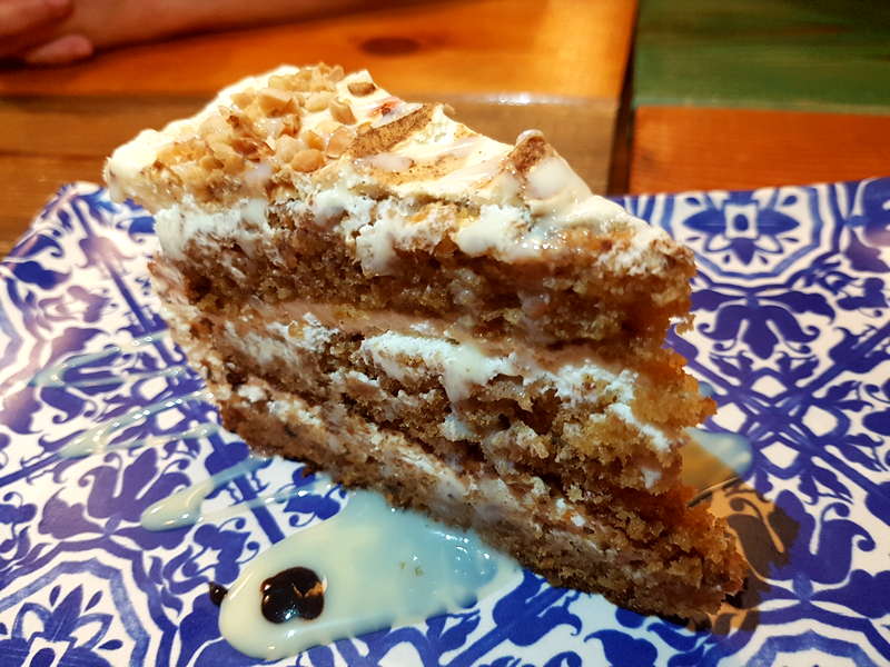 Y para los carnívoros, solomillo de cerdo con salsa sumiso 4,50€/9,00€, solomillo de ternera gallega al humo de romero 7,20€/100gr, tataki de pato con salsa de fresas y guindillas 3,90€/7,80€, carrillada ibérica al PX con puré de boniato 3,60€/7,20€, presa ibérica al momofucu 5,50€/11,00€, hamburguesa de buey con panbrioche de tomate 4,90€ o la hamburguesa de Angus de Nebraska con BBQ de Jack Daniels 12,00€/200grs. A Dani nunca le han interesado mucho los postres. Por esa razón y por el tiempo que la repostería quita a la cocina, decidió poner los postres en manos de Suitcake, de lo mejor de Sevilla. Pero en la actualidad estan trabajando para tener sus propias tapas dulces (postres) ahora que por fin van a tener espacio en la cocina.