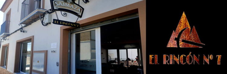 El Rincón Nº 7 debe su nombre a una calle de Yaiza, un bonito municipio situado al sur de la isla de Lanzarote, donde vivieron Maribel y David antes de cambiar los hermosos paisajes volcánicos de Lanzarote por las grandes dehesas dedicadas a pastos y encinar de Alnalcóllar. Tras una enorme reforma de su casa junto a la Plaza de los Mineros, donde tienen su residencia y su negocio, la pareja puso en marcha un establecimiento hostelero con una decoración sencilla, paredes blancas texturizadas con piedras y adornadas con cuadros alusivos a los mineros que explotaban la corta minera. Hasta el logotipo de la empresa recuerda la famosa mina. Dentro, un salón luminoso de grandes ventanales, con sillas y mesas de aspecto oxidado, como un guiño a la mina, y una pequeña barra de servicio con una ventana que deja ver la cocina. Fuera una gran terraza con toldos y vistas a los tejados del pueblo. En la terraza encontramos además un ahumador de leña de encina que usa David para rematar algunos de sus platos.