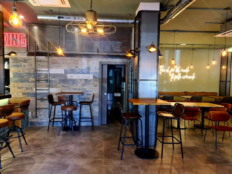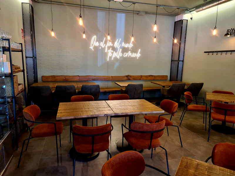 La decoración está diseñada por el suegro de Jaime. Un arquitecto que ha proyectado un espacio diáfano de aire industrial, con una pequeña barra de servicio a la izquierda de la que cuelgan las copas de vino, neones tanto para la cocina, como un bonito neón al fondo del salón que reza «Que el fin del mundo te pille comiendo». Mesas bajas con tapas de madera y sillas tapizadas en tonos tierra. Las bombillas de luz cálida cuelgan del techo dándole una iluminación cálida al conjunto. De separador del salón tienen una pequeña bodega de metacrilato iluminada donde se guardan los vinos de la carta. Fuera, una gran terraza cubierta con un cerramiento de toldos y pérgolas bioclimáticas para poder sentaros en exterior si os apetece. Su carta está sujeta a los clásicos de nuestro recetario. Avareo trae al Aljarafe todos los sabores de la cocina andaluza genuina. Pero la suya no es una cocina cualquiera, porque bebiendo de la más pura tradición, Javier ha evolucionado sus platos aportándoles ese toque inconfundible de los cocineros con proyección. Una carta que pone las miras hacia nuestra tierra, sin dejar de ofrecer buen producto autóctono y reinventando a cada paso el recetario andaluz. Con personalidad y una visión personal de cuanto sucede en el panorama culinario actual, Javier defiende una cocina de la que lejos de artificios y funambulismos, solo salen platos en los que el producto se trabaja como se ha hecho siempre, con sabores que se potencian por el efecto de elaboraciones naturales.