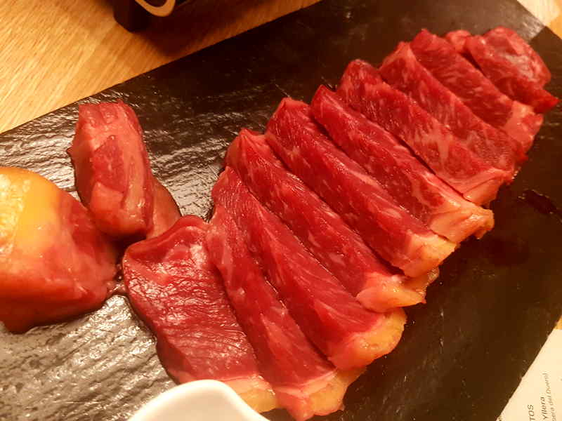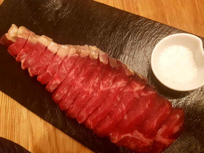 En una época en la que el vegetarianismo en sus diferentes vertientes y el culto a lo verde es una clara tendencia al alza, el instintivo impulso carnívoro no remite entre los aficionados a la buena cocina. Los productores de ganado han sofisticado la cría y control de la carne para el consumo de aquellos negocios que ejecutan con portento el arte del asado. Hoy en día, los asadores exigen mayor conocimiento y cultura cárnica por parte del comensal, porque estos negocios han diversificado la oferta cárnica en un amplio catálogo de cortes, razas, orígenes, edades y períodos de maduración. Hemos vuelto a la reapertura de este coqueto restaurante especializado en carnes Premium de vaca. Un establecimiento que tuvo la mala suerte de abrir en los meses previos al confinamiento pero que ahora resurge con fuerza para dar a sus clientes la mejor selección. Un espacio propiedad de la empresa Vértice Gestión Hotelera, cuyo punto de partida es la calidad de la carne. Y es que la Brasa lo hace todo bueno, pero si eliges carne de mala calidad, no esperes que la piedra haga milagros. En Vakum se elijen cortes de carne adecuados para una piedra volcánica que alcanza hasta 300 grados de temperatura y que tú mismo gestionas a la hora de dar el punto a la carne.