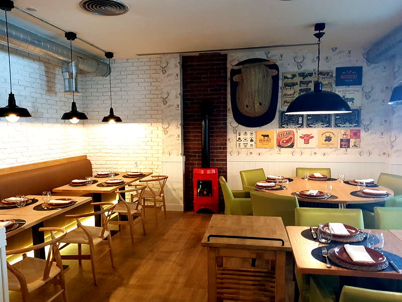 Al frente de la sala encontramos a David Moreda, un experimentado profesional hostelero que os orienta en todo momento de los detalles para tratar las carnes con todo el respeto que se merecen. En su carta, diseñada por el joven chef Alejandro Grosso, tenéis entrantes como el queso añejo de oveja 7,50€/11,00€, jamón ibérico de bellota «Federico Flores» 10,50€/17,00€, anchoas del Cantábrico 00 12,00€, trilogía de croquetas (Gambas al ajillo, chipirones en su tinta y queso con membrillo) 8,50€, paté de picantón 7,50€, lingote de foie sobre torta de aceite 10,00€, clásica porra antequerana 6,00€, chacolí de salmorejo de mango con langostinos 4,50€, tomate aliñado con ventresca de atún 6,50€, ensalada de canónigos con queso de cabra 8,50€, parrillada de la huerta 7,50€, alcachofas salteadas con jamón 8,50€ o el carpaccio de Wagyu con caviar de AOVE, parmesano y rúcula 9,00€. Burguer premium, como la beef burguer 9,00€ o la Angus burguer 12,00€ e incluso pescados que os podrán traer de la Arrocería La Plaza, como el lomo de bacalao 11,00€ o el entrecote de atún rojo 21,00€.